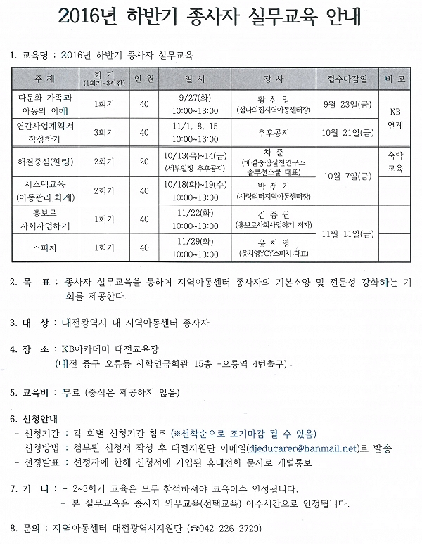 2016년 하반기 종사자 실무교육 신청을 받고 있으니